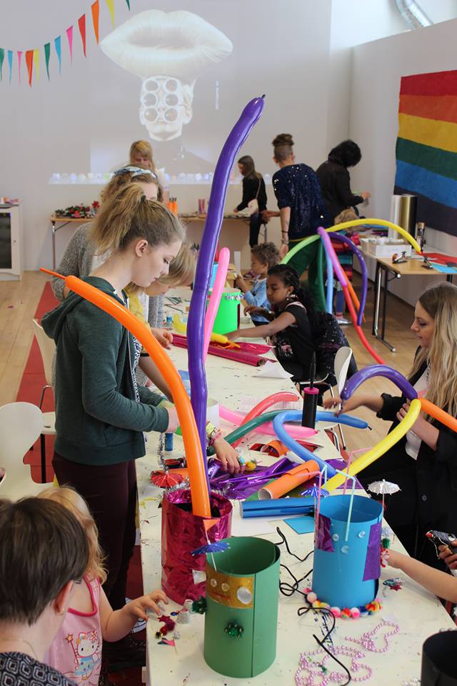Den 10/5 höll jag workshop på Växjö konsthall inför paraden på Växjö Pride. Ett sextiotal personer gjorde pridekronor och ballongkreationer på konsthallen.
