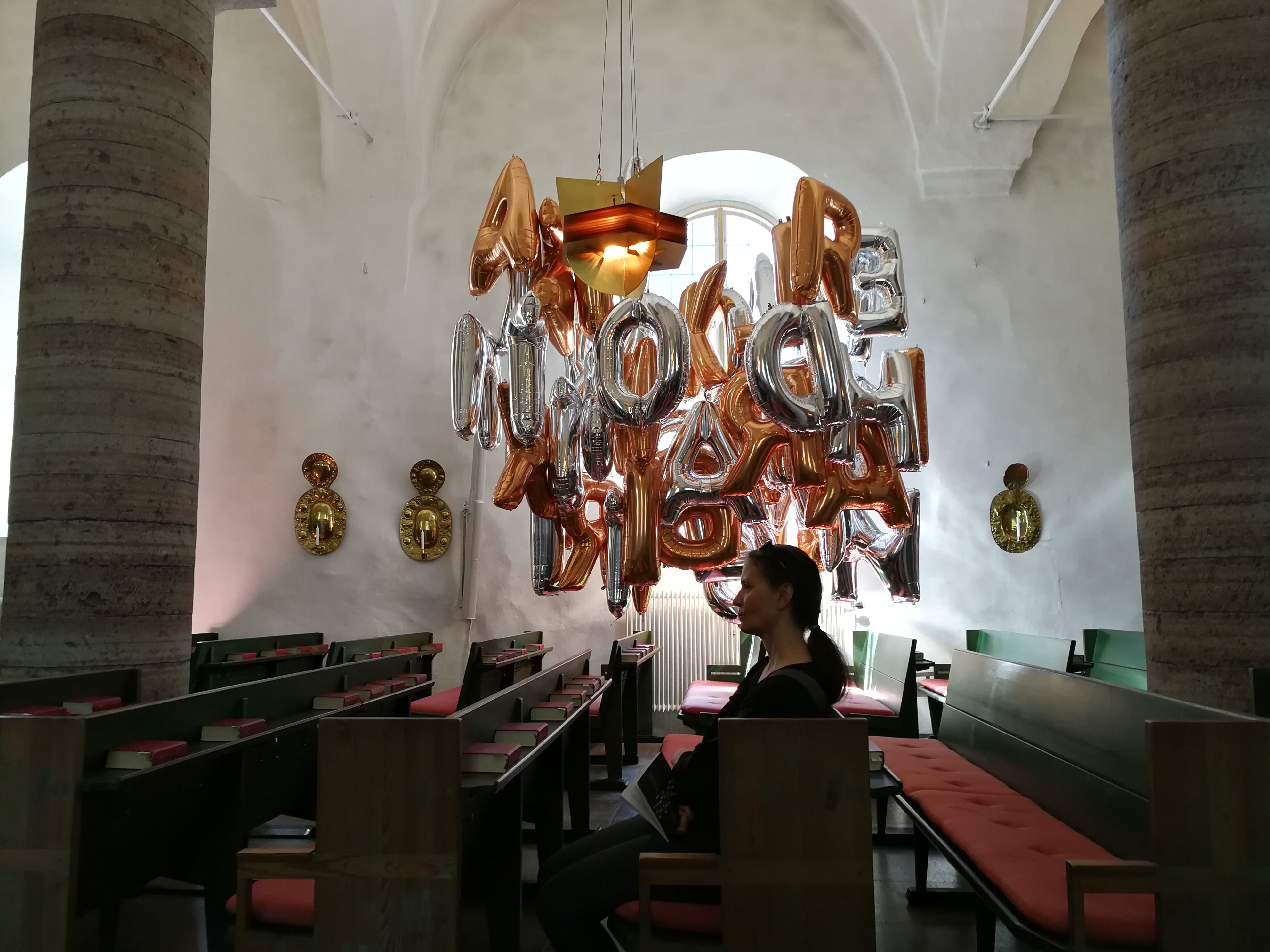 Ur katalogen Helighetens bilder: I Alla Helgona kyrka visar Zafire Vrba Prayer, en svävande bokstavs-skulptur bestående av ett hundratal folieballonger i silver och guld. Skulpturens volym och de krockande bokstäverna påminner både om kakofoni och tungomålstalande, samtidigt som de skapar en viktlös, innerlig känsla av bön.