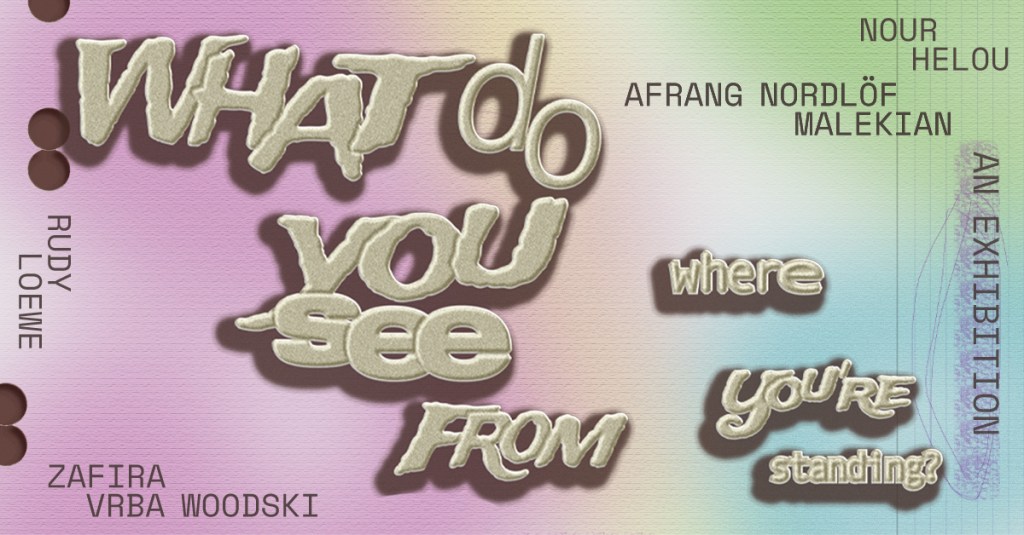 Folkets Park i Malmö firar World Pride 2021 med utställningen What do you see from where you’re standing? Medverkande är Nour Helou, Afrang Nordlöf Malakian, Rudy Loewe och jag som visar filmen I’m continuously crying tears of estrogen and tears of testosterone på en stor skärm under grönskan vid dammen i parken. Utställningen är curerad av Tawanda Appiah och öppnar 12:e augusti och pågår till 30:e september. Mer information finns här.