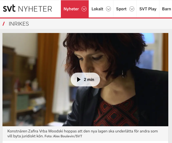 SVT gjorde ett repotage om förslaget på den nya könstillhörighetslagen. Inslaget var en del av Agenda 14/11 men också som ett eget reportage på SVT Nyheter. Se klippet här.