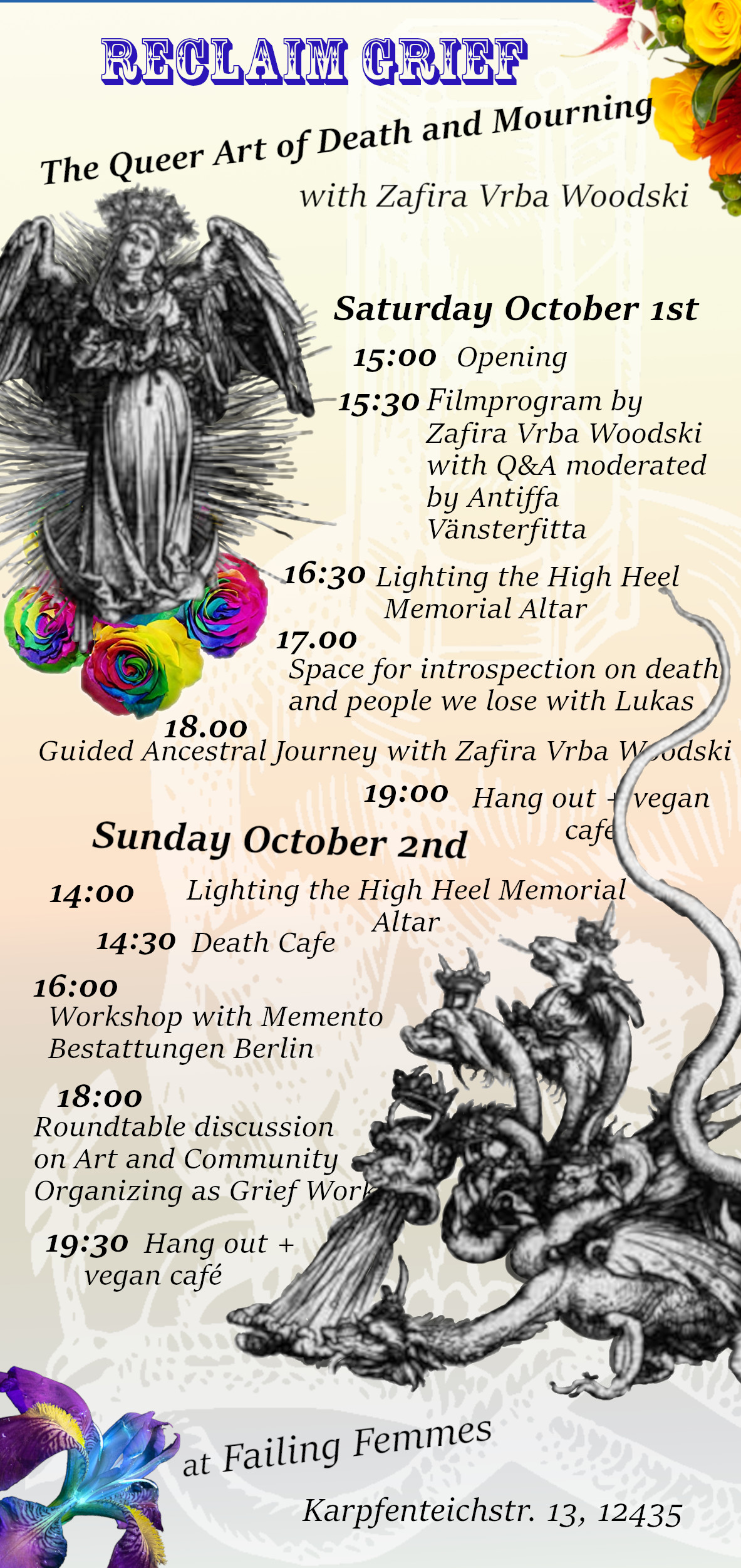 15:00 Opening of Reclaim Grief – a weekend full of the queer art of death and mourning