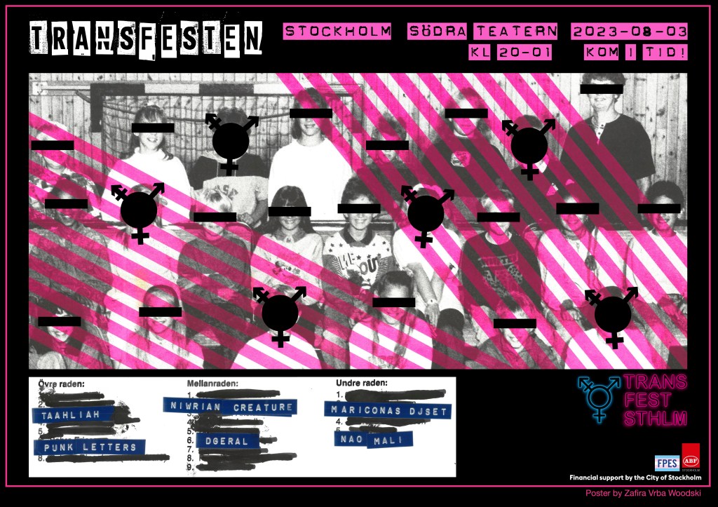 Varmt välkomna till årets Transfesten! 3/8 kl 20-01 på Södra teatern i Stockholm. I år har jag gjort årets affisch och uppträder även med dragcirkusen PUNK LETTERS.