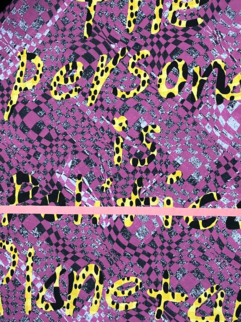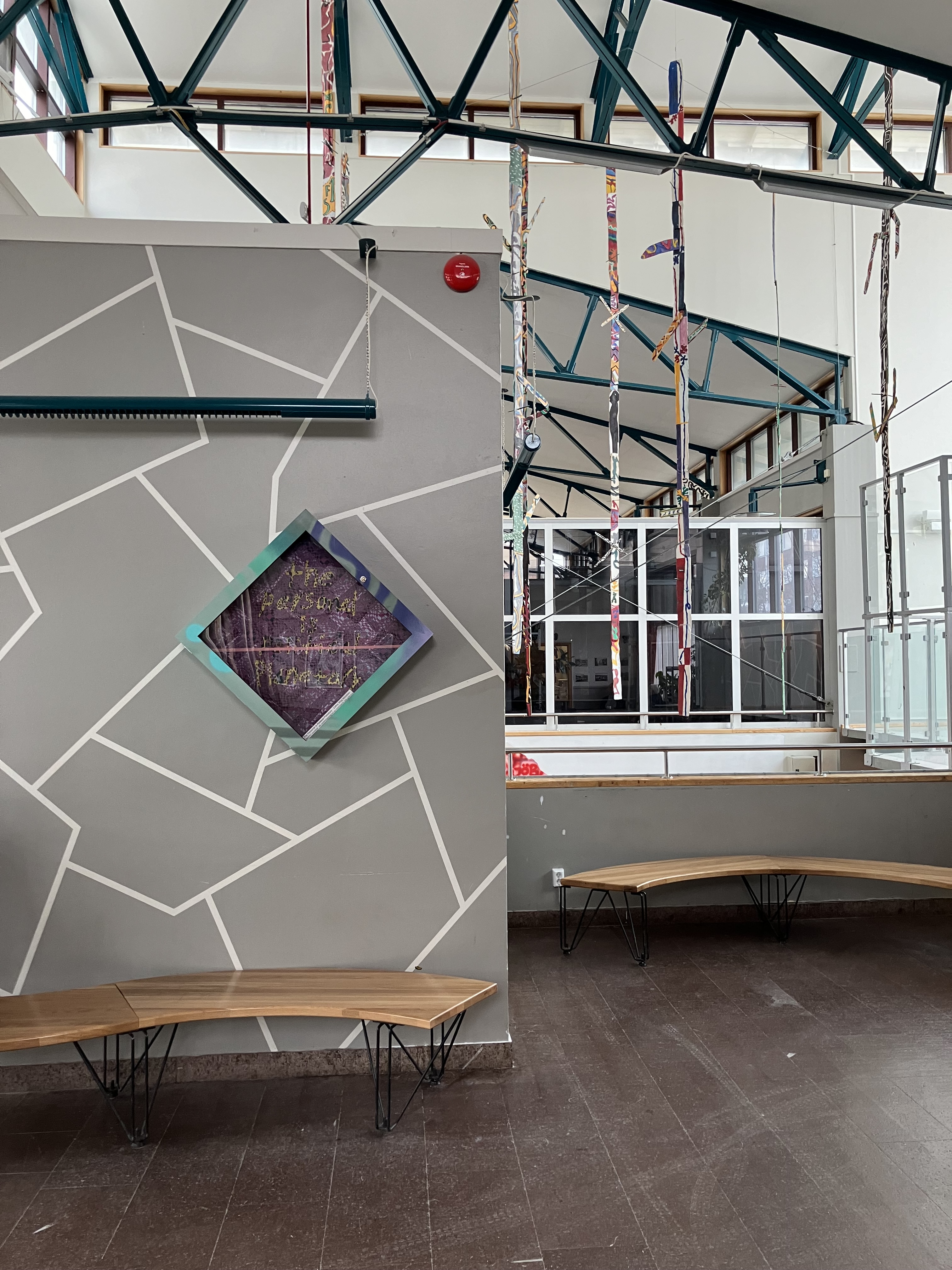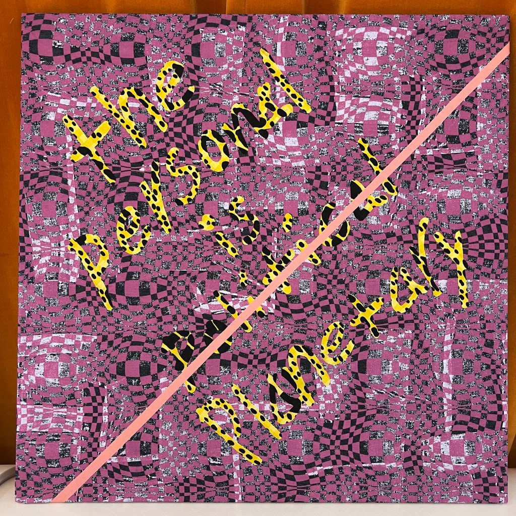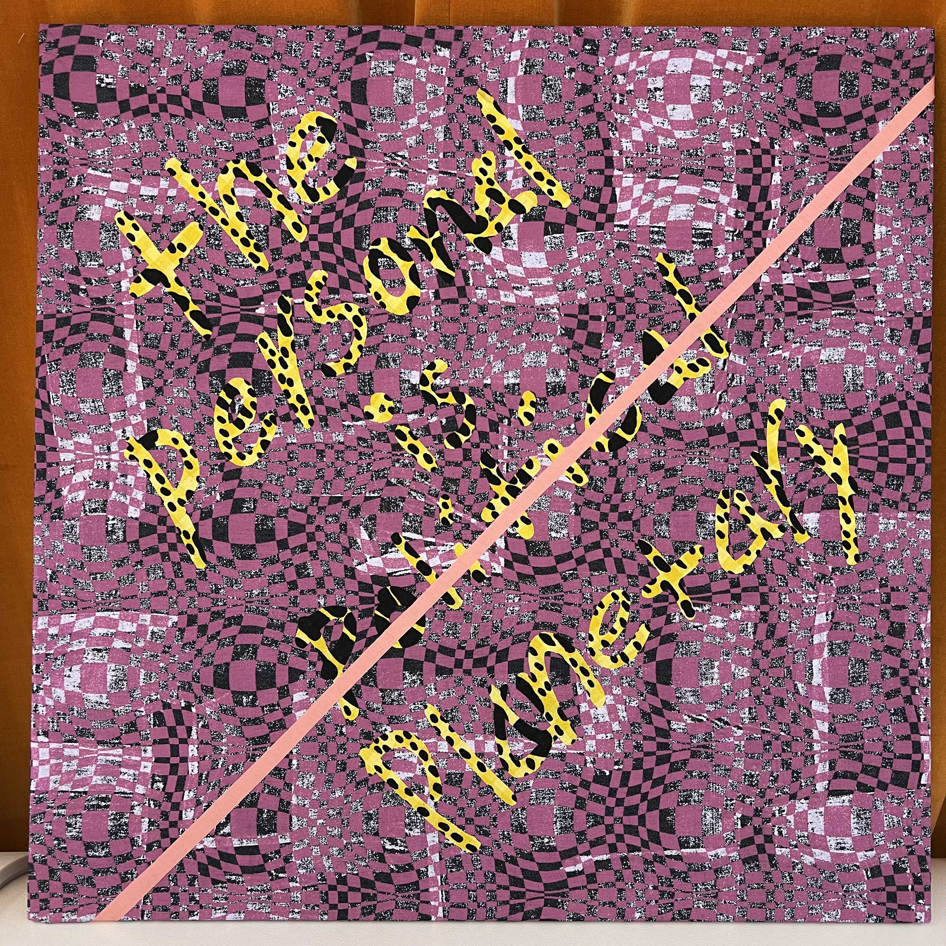 Textil applikation med återbrukade tyger, 65 x 65 cm, 2024