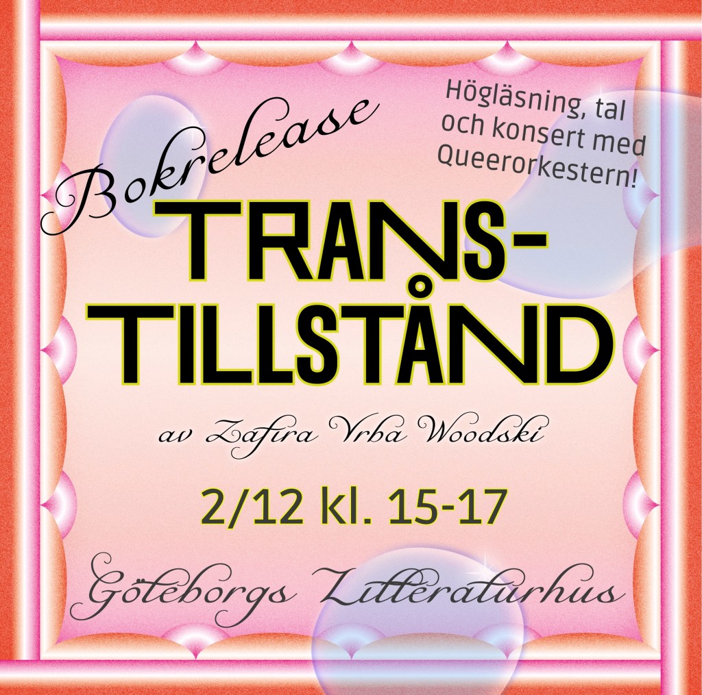 Boken Transtillstånd bygger på erfarenheter av att vara trans i en värld som inte är utformad för könseufori. Det är en bok som följer transitionens röda tråd utan att lura läsaren att denna resa skulle vara linjär eller ha en tydlig destination i sikte. Zafira Vrba Woodski väver en historia långt bortom illusionen om att det bara skulle finnas två möjliga kön att välja på.