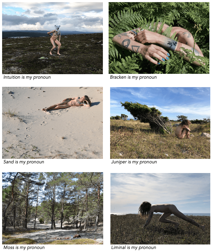 Transtillstånd handlar om detta livslånga utforskande av identiteter som är lika mycket allmänmänskliga, icke-mänskliga som bortom-mänskliga. Binära kön (man och kvinna) genomsyrar både vårt språk, tänkande, vetenskapliga och juridiska system. Därför är Transtillstånd också ett pågående och konstant utforskande av det som finns bortom allt detta.